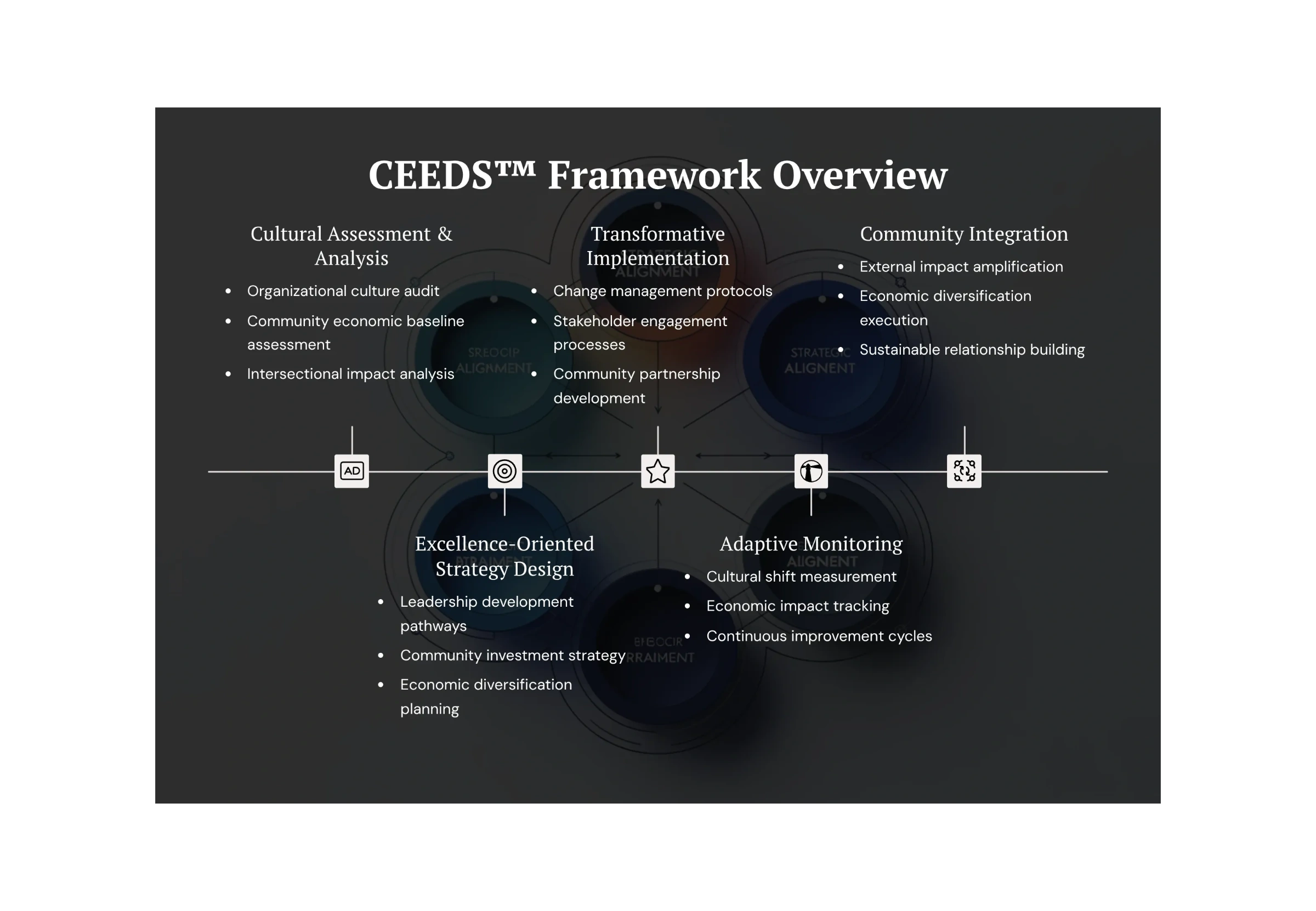 The CEEDS™ Framework transforms cultural excellence initiatives into measurable economic impact—for your organization AND your community.